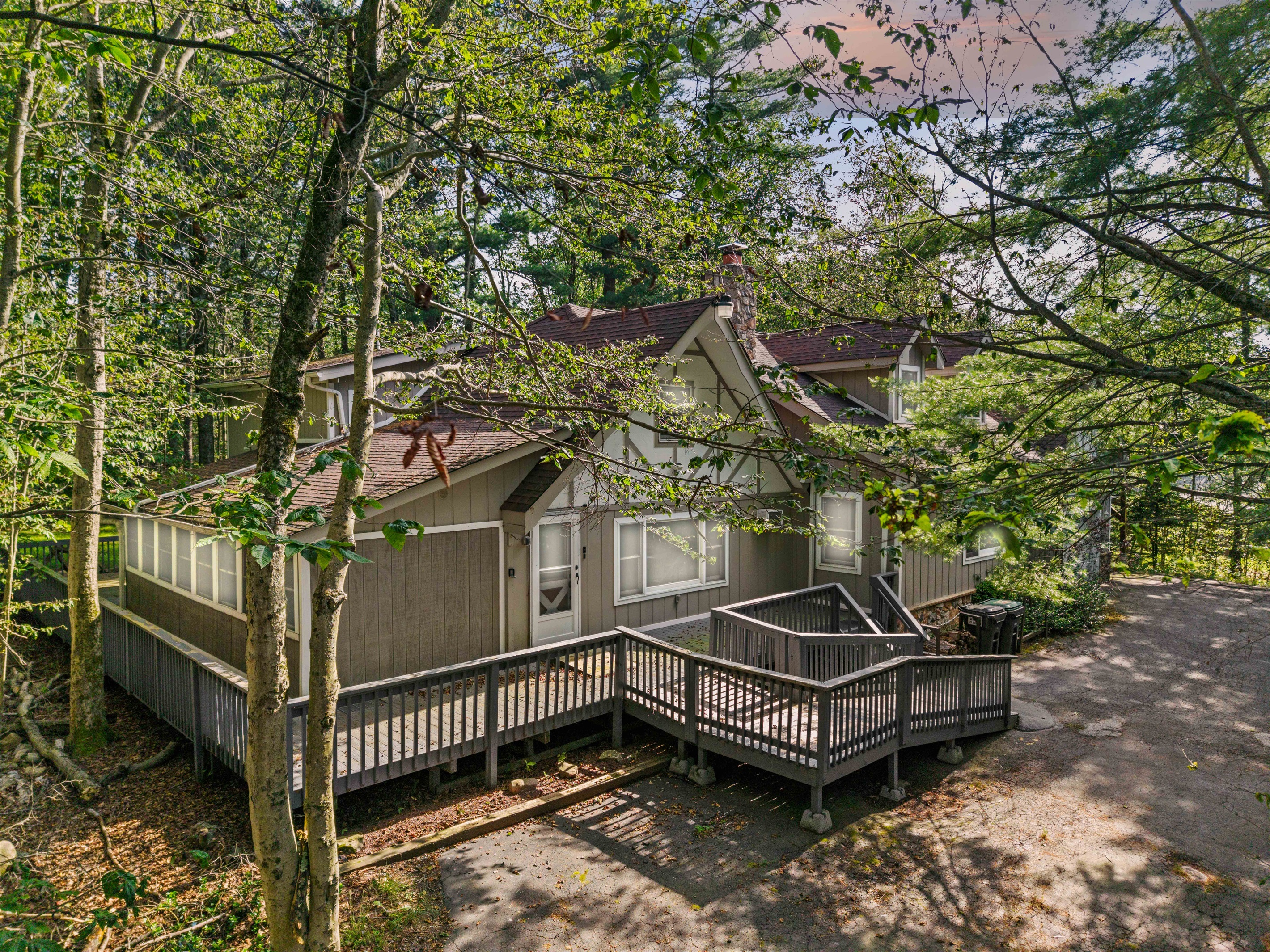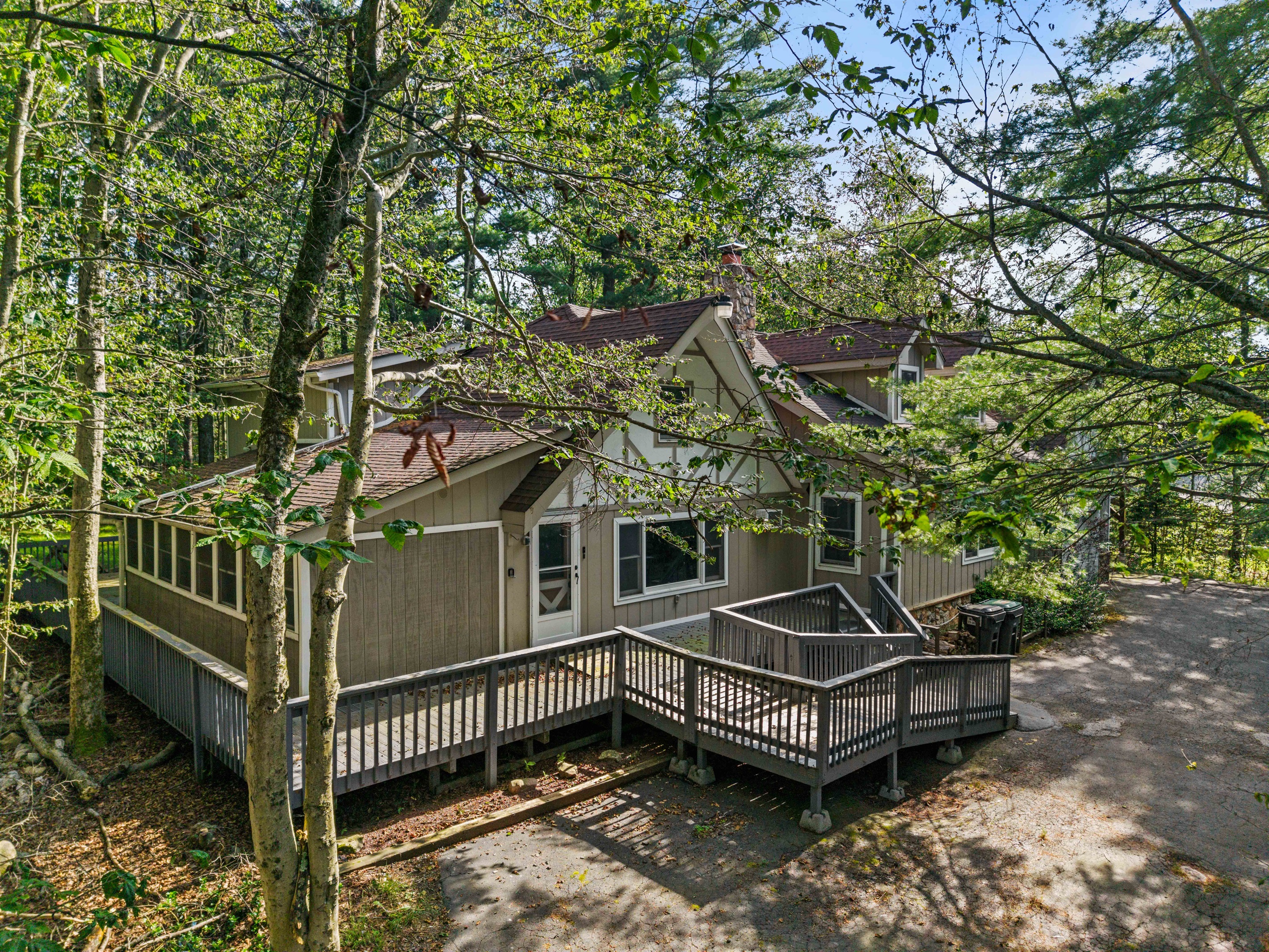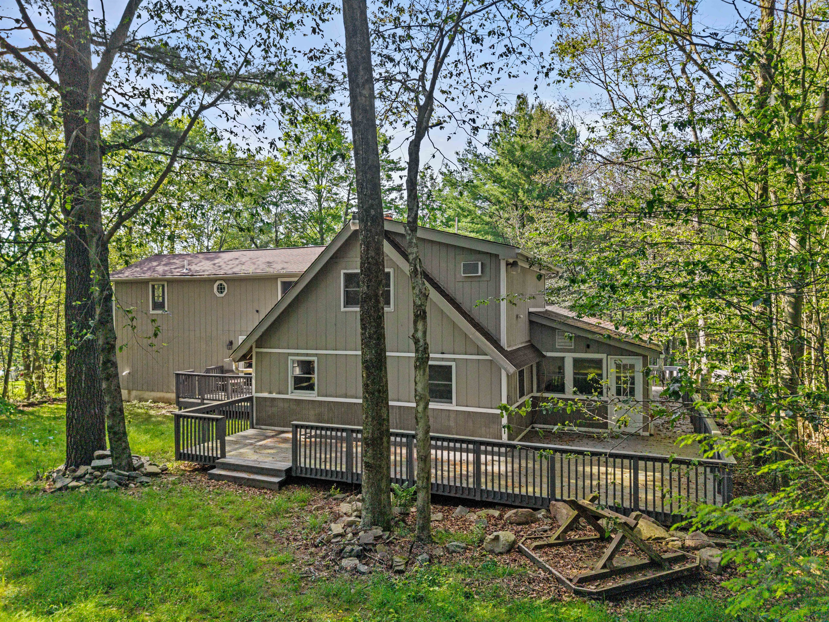 Perfect blend of luxury and space in this fully renovated 3-bedroom, 3 bath home, with 2 bonus rooms situated in the prestigious Pocono Farms Country Club Association - home to a PGA-rated 18-hole golf course. This chalet-style retreat offers over 3000 sq ft of refined living space, featuring beamed ceilings, smart home upgrades, and walls of windows that bathe every room in natural light. Step into the sunroom and enjoy the hot tub while enjoying a movie on a big screen. Best of all, you are just steps from the clubhouse and all that this amenity-rich community has to offer. Enjoy access to an Olympic-sized pool with splash pad, fitness center, private lake with beach, parks, and of course, championship golf. This home is wheelchair accessible.