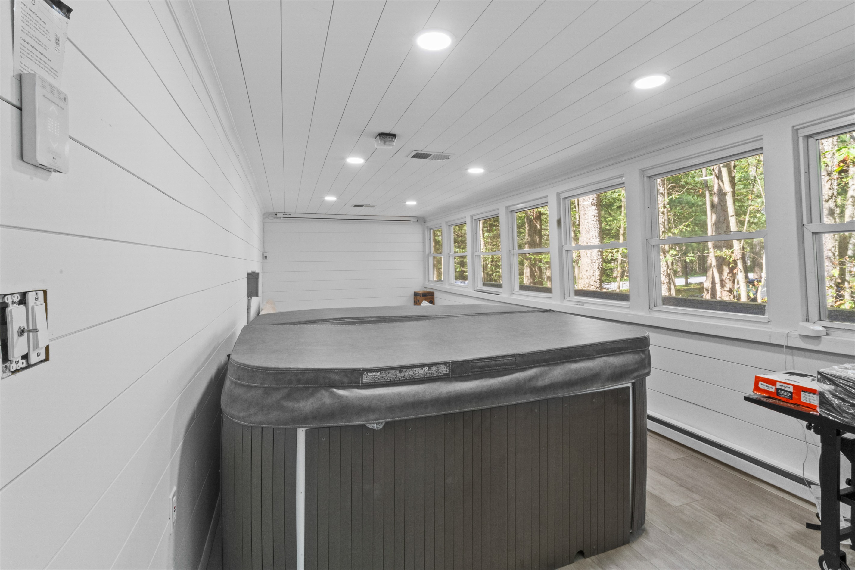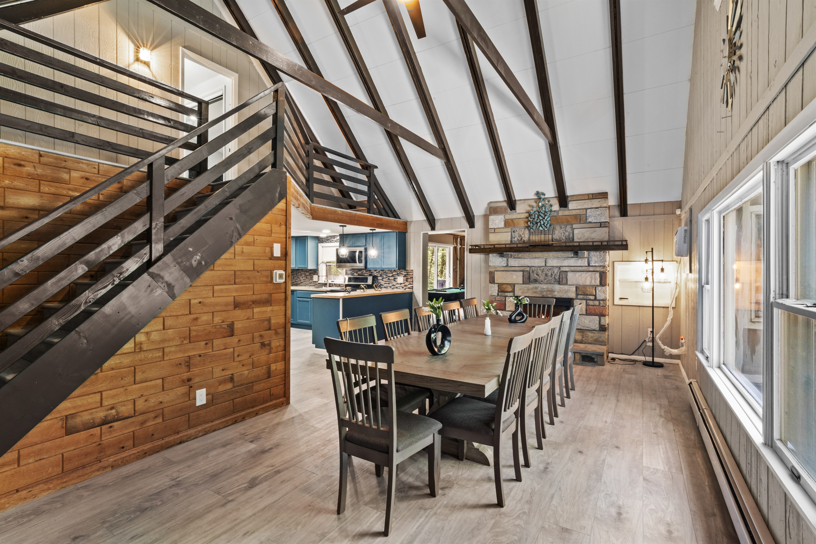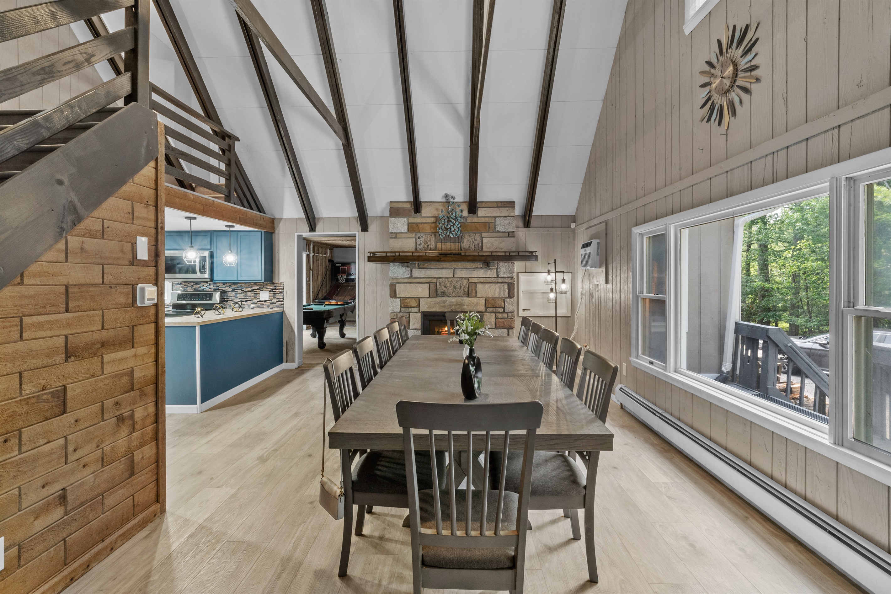 Perfect blend of luxury and space in this fully renovated 3-bedroom, 3 bath home, with 2 bonus rooms situated in the prestigious Pocono Farms Country Club Association - home to a PGA-rated 18-hole golf course. This chalet-style retreat offers over 3000 sq ft of refined living space, featuring beamed ceilings, smart home upgrades, and walls of windows that bathe every room in natural light. Step into the sunroom and enjoy the hot tub while enjoying a movie on a big screen. Best of all, you are just steps from the clubhouse and all that this amenity-rich community has to offer. Enjoy access to an Olympic-sized pool with splash pad, fitness center, private lake with beach, parks, and of course, championship golf. This home is wheelchair accessible.